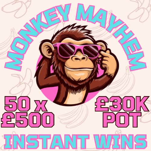 Won: Won MONKEY MAYHEM! 50 X £500 CASH INSTANT WINS + £500 END PRIZE! LOW ODDS!
